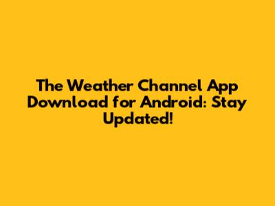 Download The Weather Channel App For Android: Stay Updated!
