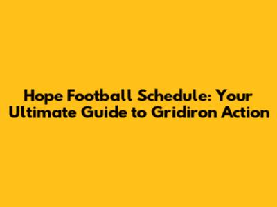 Understanding the Hope Football Schedule: Key Dates and Times
