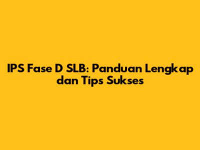 IPS Fase D SLB: Panduan Lengkap Dan Tips Sukses